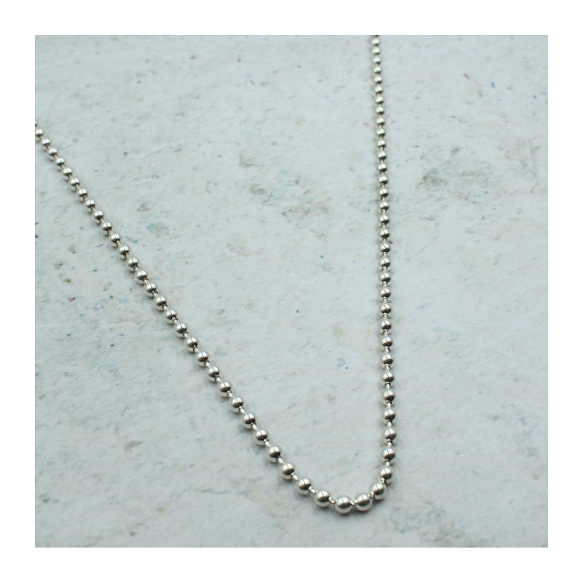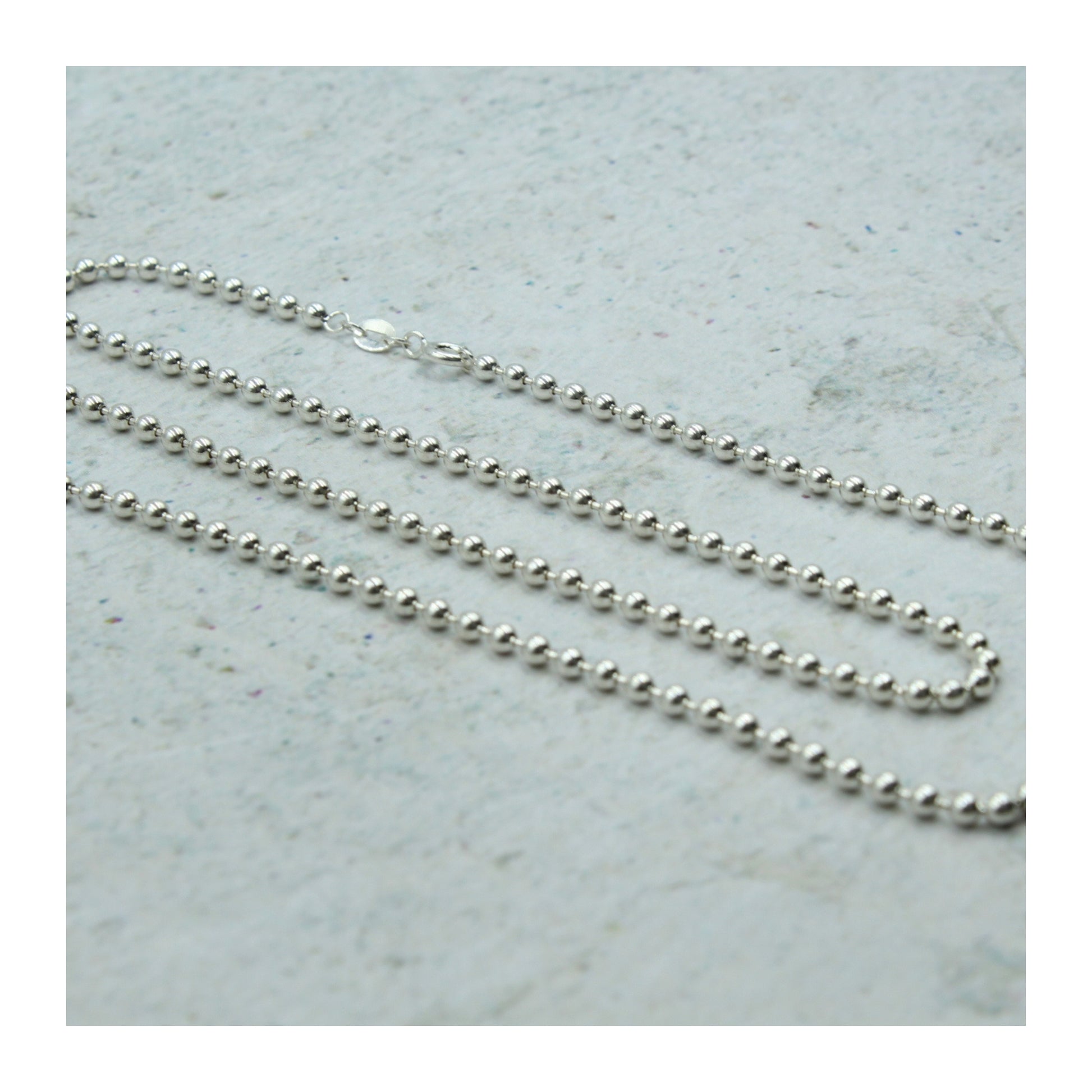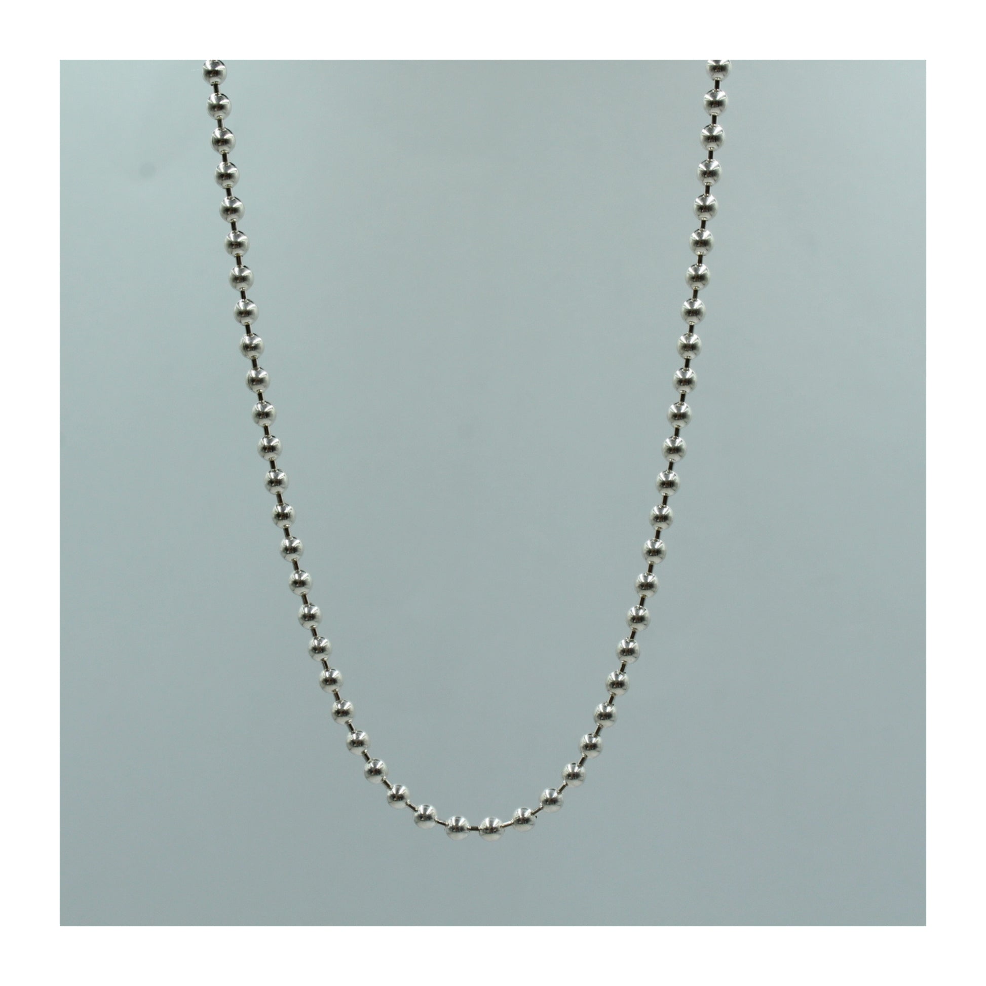 Cadena estilo militar elaborada en plata .925 auténtica, con un diseño de bolitas perfectamente pulidas de 3 mm que reflejan la luz con cada movimiento.