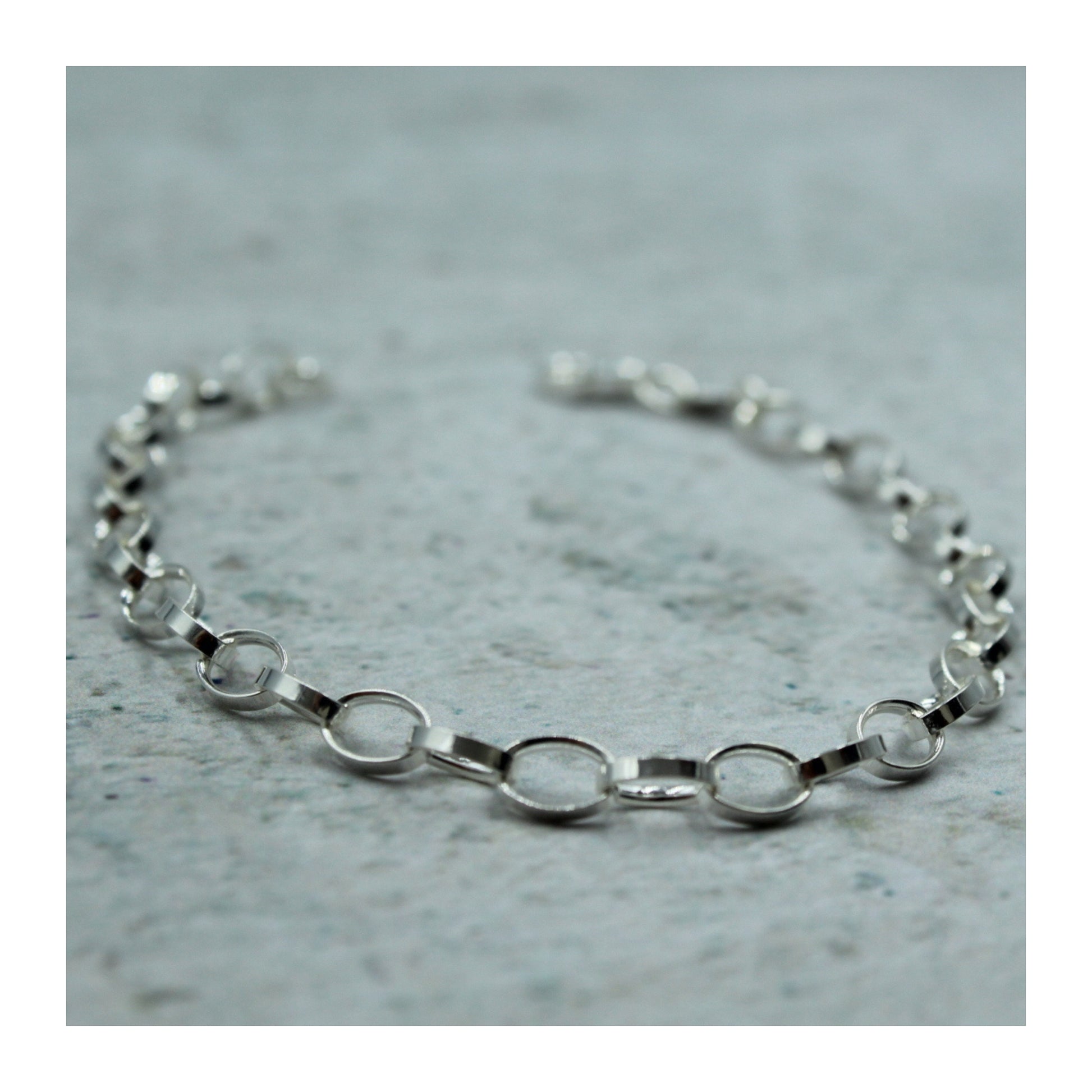 Pulsera elaborada en plata .925 auténtica, con un diseño clásico de aros forzados que aportan elegancia y versatilidad.