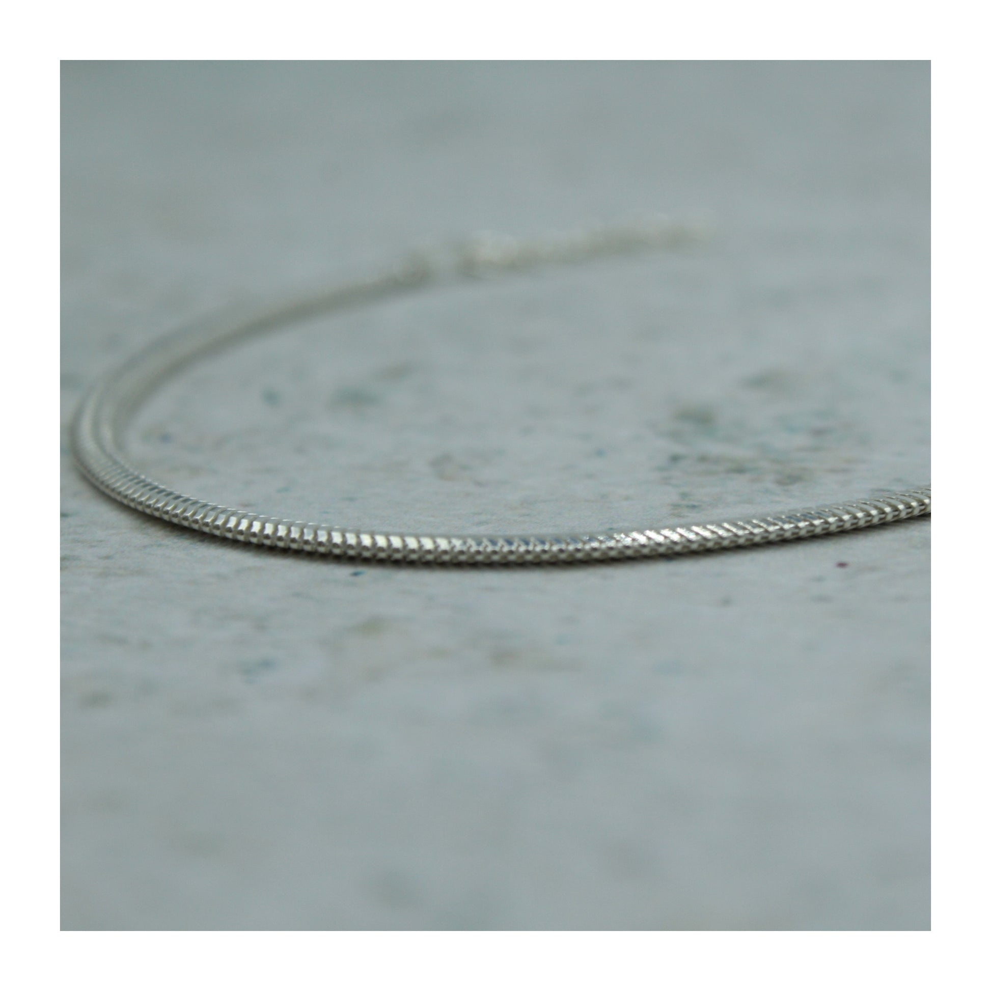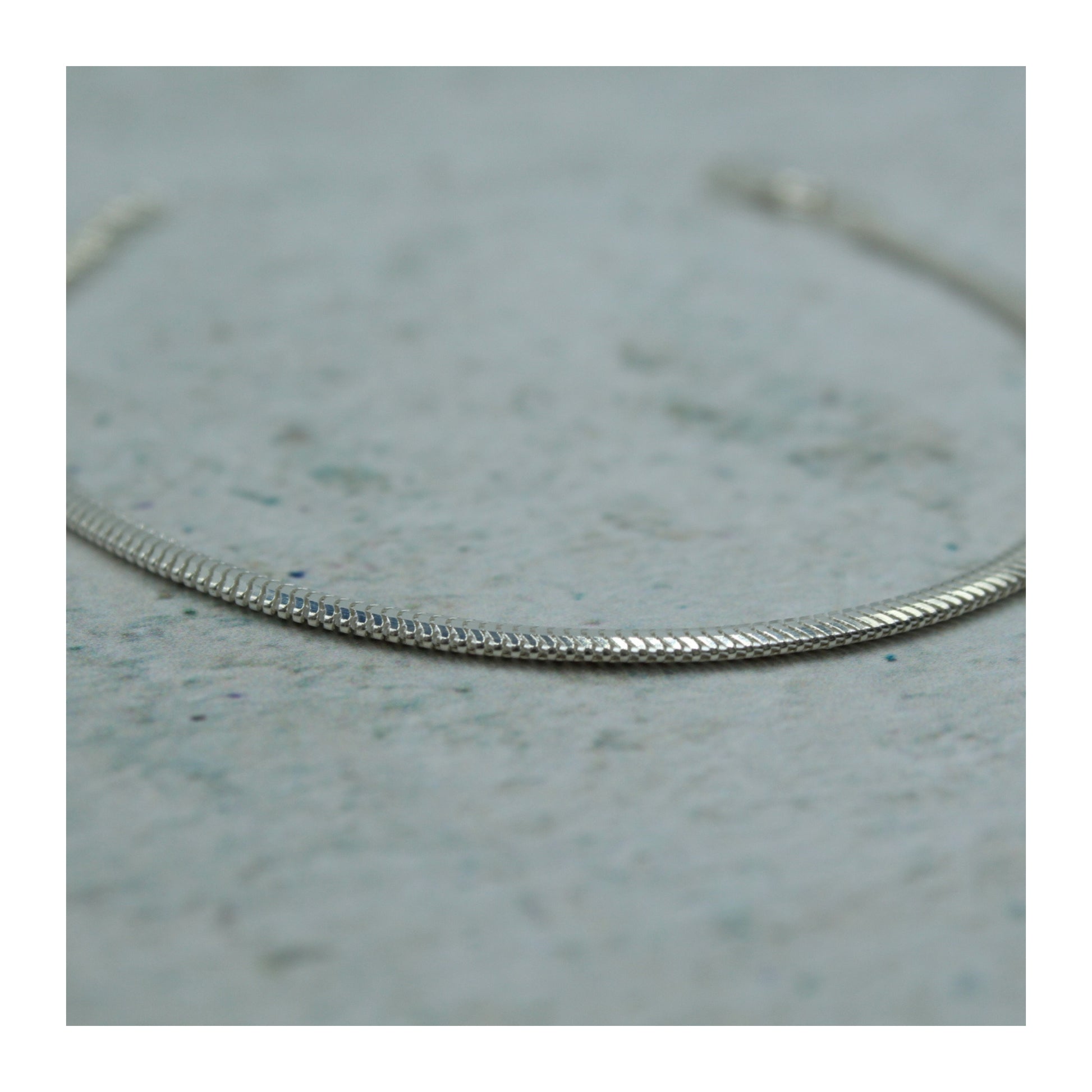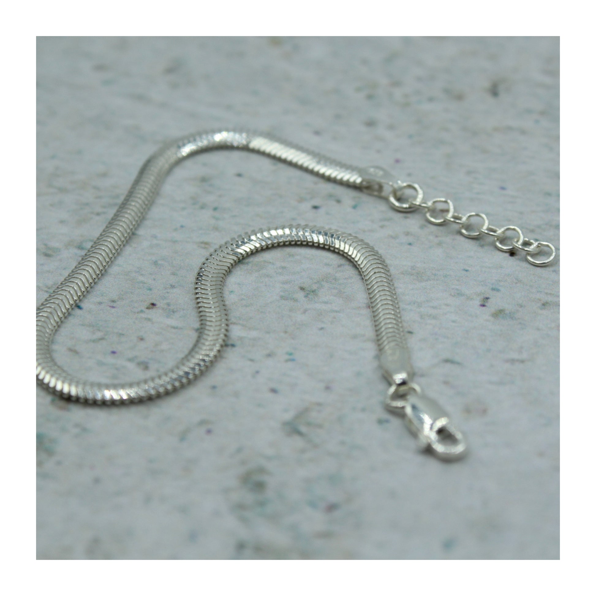 Pulsera elaborada en plata .925 auténtica, con tejido tipo panza de víbora, caracterizado por su acabado elegante, uniforme y flexible. Su diseño unisex la convierte en una pieza versátil, ideal para acompañar cualquier estilo.