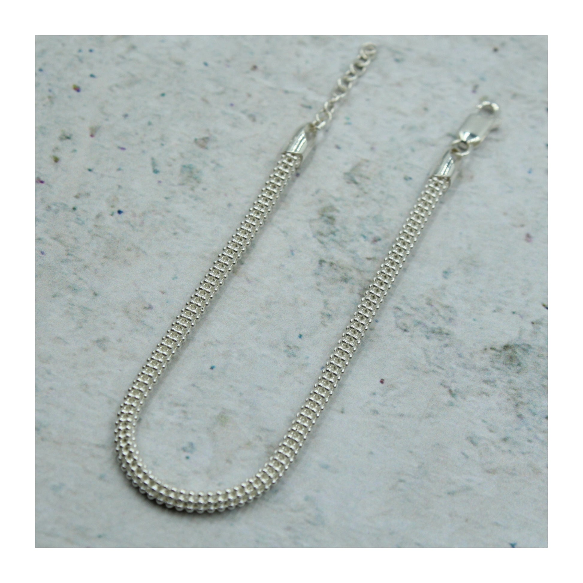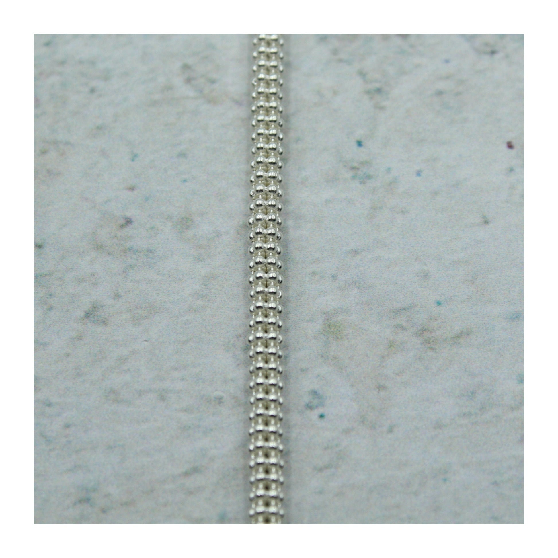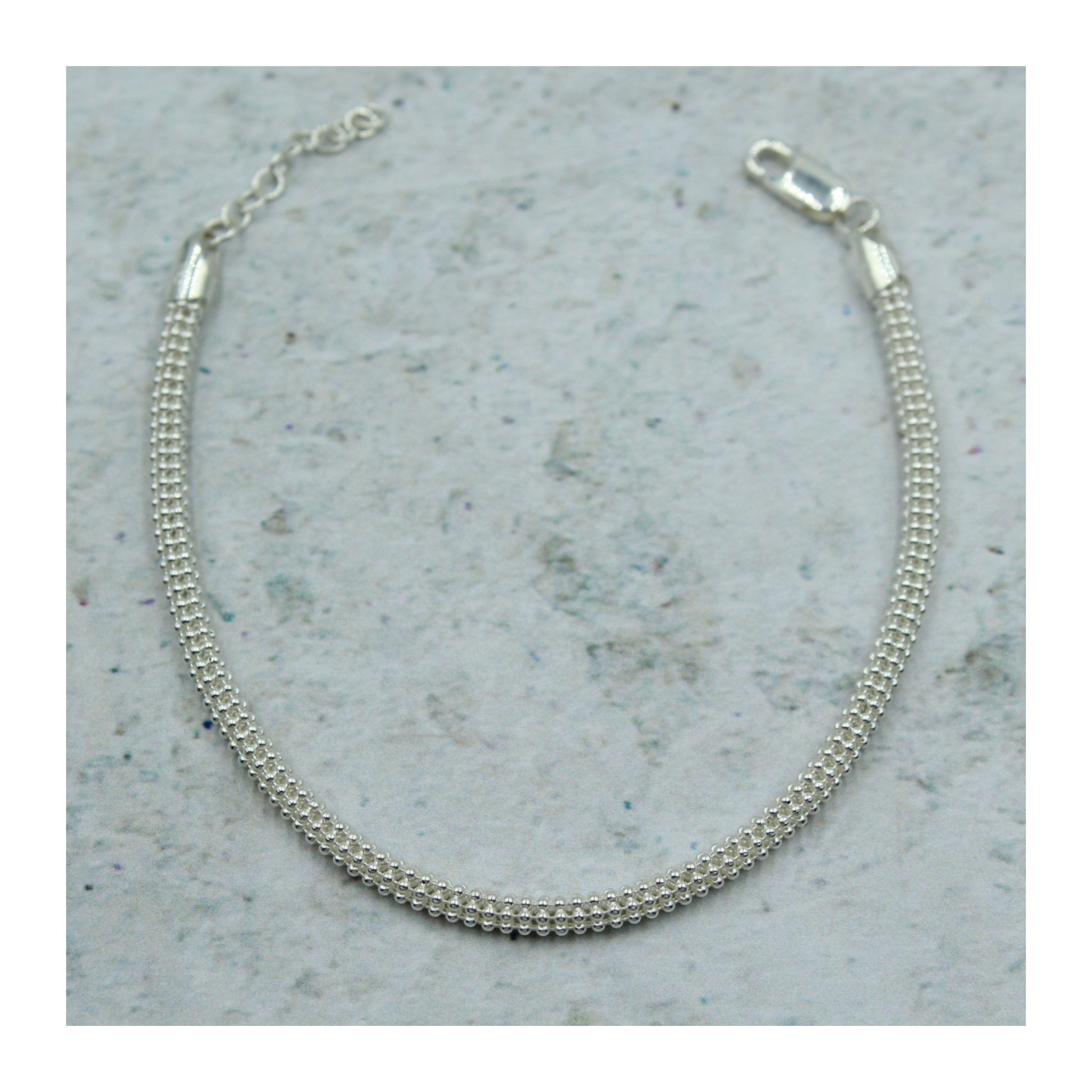 Pulsera elaborada en plata .925 auténtica, con un diseño tubular de pequeñas bolitas que aporta elegancia y versatilidad. Su acabado espejo realza la luminosidad de la plata, brindando un estilo moderno y refinado que se adapta a cualquier ocasión.